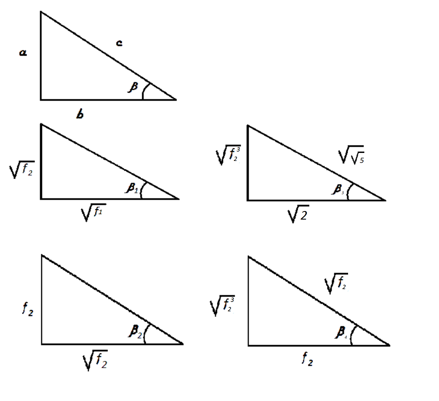 Пусть a2+b2=c2 tgβ=a/b, ƙa2+ƙb2=ƙc2