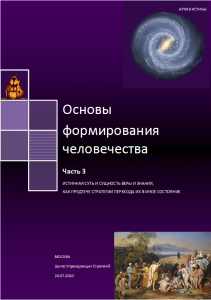 Выражая не личное желание, а объективное осознание истребования сложившимися обстоятельствами в необходимости перехода на иное управляемое исполнительское состояние более высокого порядка со стороны нового программного процесса, предначертанного рамками нового Вектора Цели, нам попустило исследовать и изложить для суждения информацию о сокрытой части прошлых исполнительских состояний, формировавших веру и позволявших обретать декларируемое Системой знание, как некое проявление, сопровождавшее людей повсеместно в процессе осознанного воплощения действий и событий по организации их совершенствующегося бытия, воспринимаемого ими как развитие.