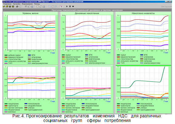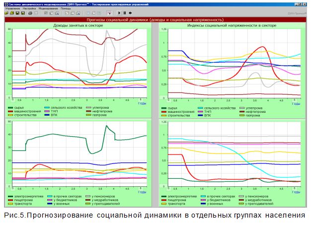 Кроме того для каждой отдельной социальной группы прогнозируются результаты изменений социальных параметров, характеризующих потребности населения и их удовлетворение в результате применения выбранной стратегии.