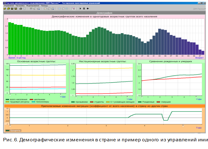 На рис.6 приведена часть прогнозов, касающихся демографических изменений в динамической модели страны.