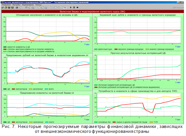 На рис. 7 приведены некоторые результаты прогнозирования изменений валютных параметров.