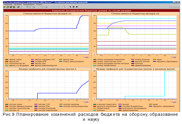Еще одно замечание. Система динамического моделирования «ДИН-Прогноз» позволяет в процессе прогнозирования контролировать (одновременно с управлением) различные финансовые потоки на специальном интерфейсе.
